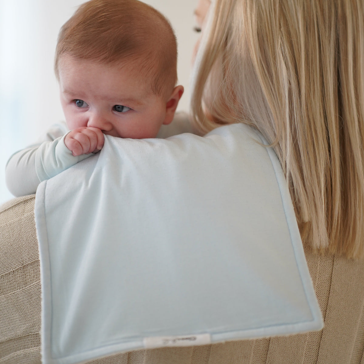 - Two waterproof burp cloths for everyday messes