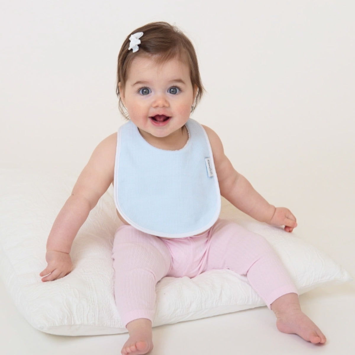 - Two waterproof bibs (Classic & Bandana) to keep baby dry