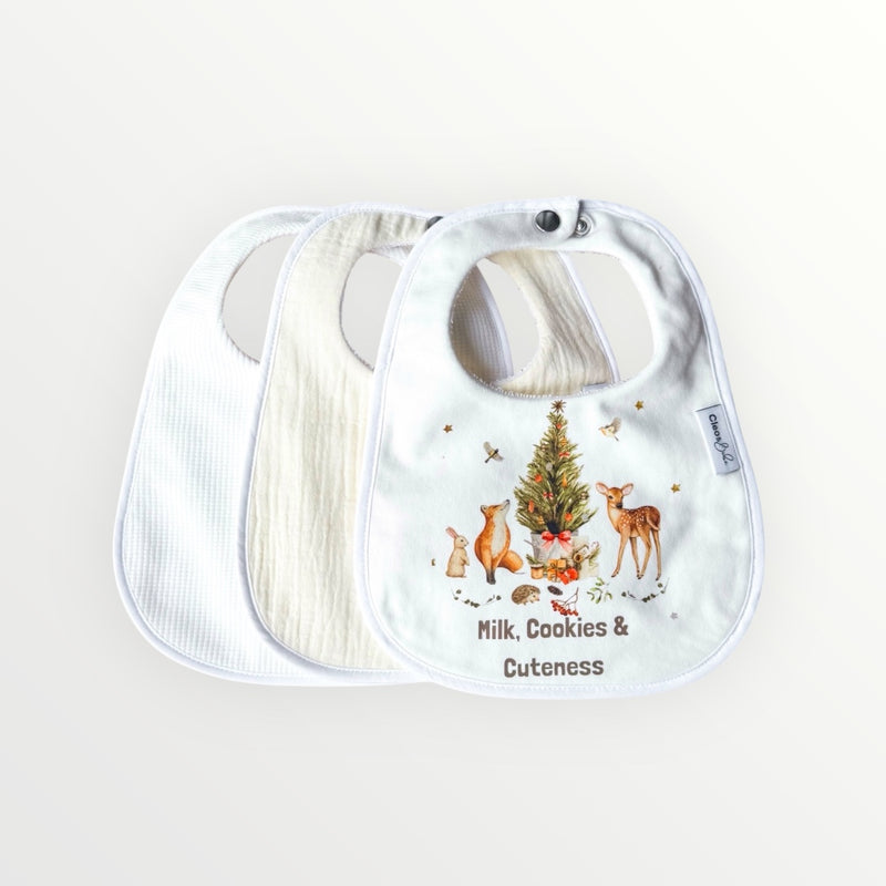 Treat your little one (or a new parent) to our Christmas Bundles—curated sets of our mum-fave waterproof bibs and matching accessories. Each bundle pairs our 3-layer, truly waterproof bibs (100% cotton touch, hidden waterproof core, no-gap fit) with practical add-ons like waterproof burp cloths, soft onesies, wraps and sweet keepsakes. Perfect for drool, reflux and teething days—keeping outfits dry, skin comfy and laundry low. Beautifully packaged, ready to gift, and shipped from Melbourne